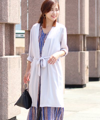 前をオープンにして着ると羽織として、釦を閉じて共地のベルトでウエストマークして頂くとシャツチュニックとして2WAYで着られる所がポイントです!