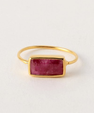 シンプルで洗練されたデザインのリング。スクエアカットのカラーストーンを配置しています。指に通すリング部分は、華奢なシルエットにして女性らしさを演出。手元に華やかさをプラスしてくれるアイテムです。他のリングとの重ねづけしてもおしゃれに決まります。