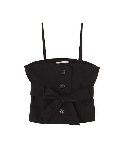 トレンチライクなカジュアルビスチェ。コルセットのように引き締めて、共地リボンでウエストマークするデザイン。細い肩ヒモで女性らしいニュアンスを引き出し、着こなしに合わせて調節できます。シャツやシンプルTシャツ、ワンピースとレイヤードしたスタイリングがお勧めです。