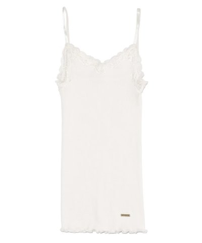 肌触りの良いテレコ素材で仕立てたキャミソール。タイトシルエットなので、トップスへ響きにくく、すっきりとしたレイヤードを叶えます。デコルテラインを飾るレースで、ぐっとフェミニンな印象に。ヘムサイドにはブランドロゴプレートをあしらって、特別感を注ぎます。