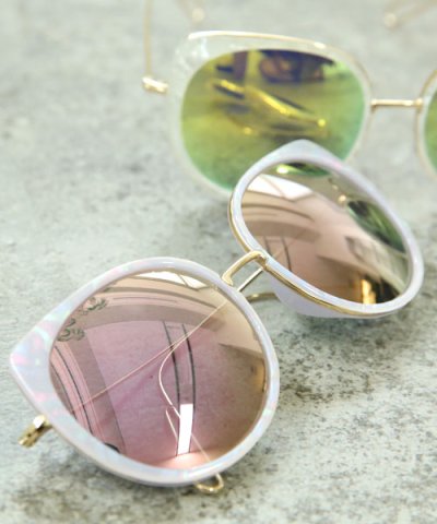 パステルフレームとミラーレンズのサングラス/queite