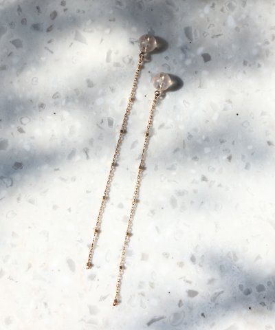 キラキラと光を放つデザインチェーンのみのピアスキャッチ。