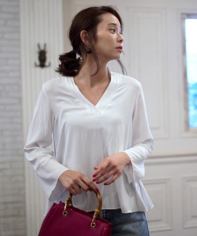 深めの重ねVネックがポイントになったブラウスです。
