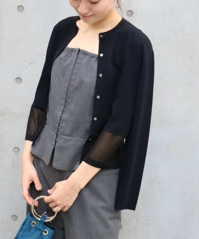 今シーズントレンドのシアーデザインを取り入れたニットカーディン。