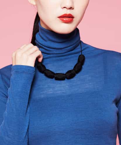 大きなモチーフをポイントにしたショートネックレス。ダイヤモンドをイメージした型の天然木に毛糸を巻いたモチーフ。ハンドメイドの温かみがあり、シンプルな装いにワンポイントさりげなく身に着けられるアイテムに仕上がりました。