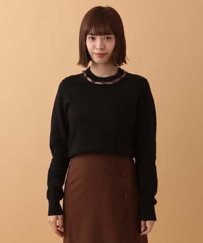 ビジュー付きコットンニットプルオーバー IMPORTED ブラック 40