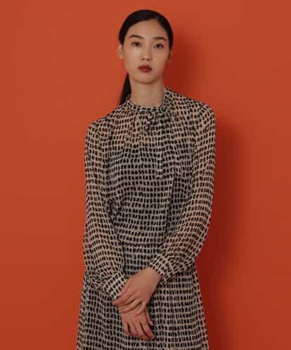 程良い透け感のテキスタイルで仕立てた、ランダムなプリント柄が映えるブラウスです。ネックラインや袖口に施したギャザーが、立体的なドレープを魅せてくれる一着です。リボンをアレンジして楽しめる襟やカフスのデザインボタンもアクセントに。同じテキスタイルで仕立てた 【GBHID56390】や 【GBEID50490】もお薦めです。model:H173 B80 W58 H84 着用サイズ:M