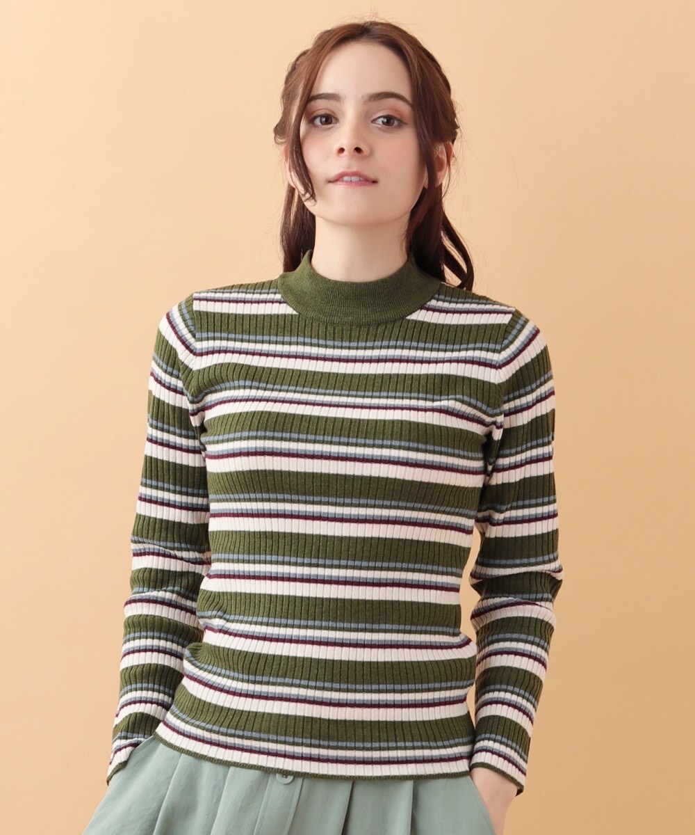 マルチカラーボーダー ニットプルオーバー グリーン 40