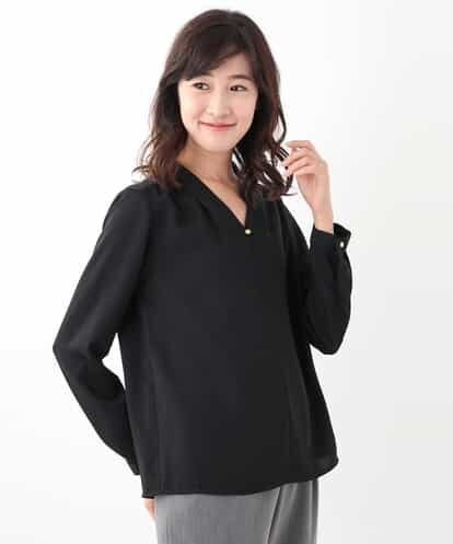 しなやかな落ち感が魅力のテキスタイルで仕立てた、プルオーバータイプのブラウスです。メタルボタンをあしらったエレガントなVネックに、タックとギャザーを組み合わせたディティールがフェミニンなドレープを演出してくれます。細めに仕上げたカフスも上品さをプラス。美しいドレープがスタイリングをぐっとアップグレードしてくれる一着です。model:H170 B80 W59 H85 着用サイズ:M