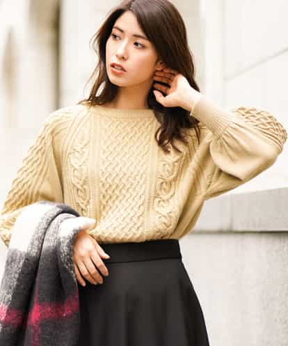 パフスリーブケーブルニット[WEB限定サイズ] ベージュ 34