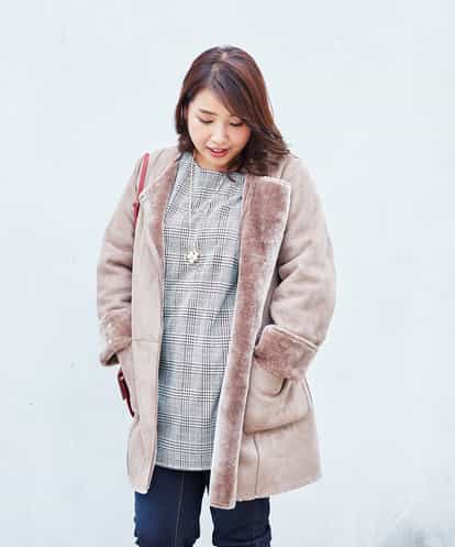 やわらかさ、軽さがうれしいジップアップのフェイクムートンコート。 ノーカラーのデザインでネックラインをスッキリ見せてくれます。 袖口を折り返して内側のボアを見せて着用するのがおすすめ。
