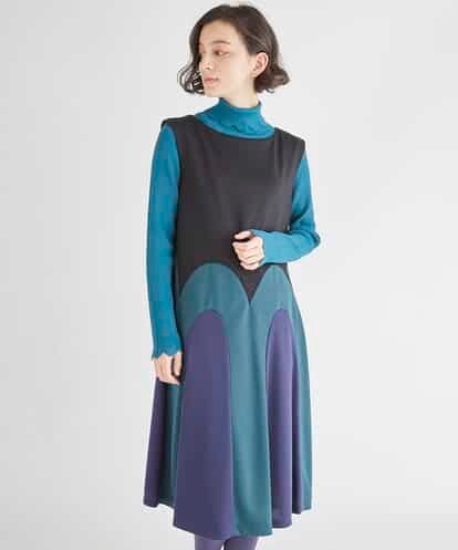 カットソーのポンチ素材をオリジナルカラーで染め大胆なパッチワーク使いのワンピースを作りました。 フレンチスリーブで中にインナーと合わせたりカーディガンを羽織ったりと通年着回しを楽しめるデザインです。 伸縮性があり堅苦しくなりすぎない着心地の良いワンピースです。 同じテキスタイルのジャケット【GJTLD-50170】と合わせてお召いただけます。【GJHLD-50190】のスカートもオススメです。