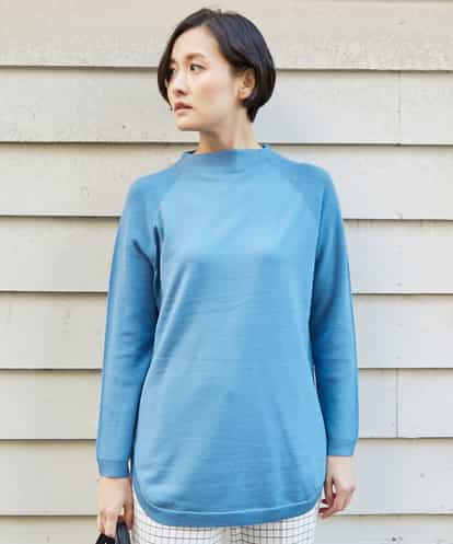 ラグランスリーブラウンドヘムニット ライトブルー 38