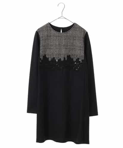 ラメ入りグレンチェックツィードと無地のウールジャージをジョイント。モヘア糸とスパンコールで刺繍をあしらい、風合いを生かす為にハンド起毛を施し、今季らしさをトッピングした華やかな印象のチュニック。セミフレアのシルエットは女性らしい上品な着こなしを叶えてくれる一枚です。同ラインで仕立てたワイドパンツ【RBLAH36330】トップ【RBBAH35290】もおすすめです。※裏地付きmodel:H167 B80 W59 H85 着用サイズ:M