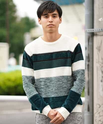 ◆トレンドのモール糸を部分使いしたボーダーニット。◆トレンドのモール糸を取り入れたランダムボーダークルーネックニット。モール糸を部分使いにすることでインパクトのある一枚に仕上げました。 今季トレンドのブラウンやダークグリーンの切色が新鮮。一枚着はもちろん、アウターのインに着てもアクセントになるオススメのニットです。※44 Sサイズと52 XXLサイズはWEB・一部限定店舗販売です。