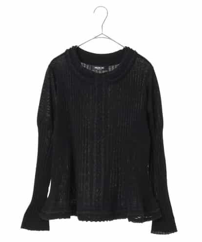 上質な着心地が特徴の繊維長の細い梳毛糸をベースに、スパークナイロンをカバーリングした糸とヴィスコースの光沢糸を使った表情感のあるテキスタイル。襟元から裾まで施した立体的なレースがアクセントに。フリルのように広げた裾や、立体感のある袖などフェミニンムードのあるこだわりのディテールがハイセンスな一枚に仕上がっています。同ラインで仕立てたチュニック【RLFAH72290】カーディガン【RLFAH70260】もおすすめです。