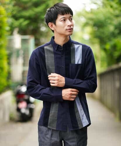 ◆1枚でサマになる!主役級タテ切替起毛オックスシャツ◆前身頃にトレンド柄を取り入れた異素材ドッキングレギュラーカラ?シャツ。今期トレンドのブリティッシュチェックと冬定番の太コーデュロイを切替パーツに使用したタテ切替デザイン。左右をアシンメトリーにし、独特の雰囲気に仕上げたのがこだわりポイント。1枚でサマになり、スタイリングのアクセントにも使いやすい、冬に大活躍するおさえておきたい1枚です。※44・Sサイズと52・XXLサイズはWEB・一部限定店舗販売です。