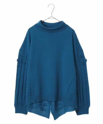 凹凸感のあるモチーフと、引き返し編みを駆使したニットプルオーバー。フロントのプレーンな編地にサイドやバック、スリーブはピッチに変化を付けたボーダーリブを組み合わせ、表情豊かなニットアイテムに仕上がっています。ランダムにあしらった立体感のあるディティールや、バックのイレギュラーヘムがポイントになった、デザイン性の高い一着です。