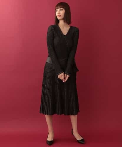 <数量限定アイテム> ラメ糸を織り込んだ華やかなニットスカート。立体的なリブ模様が表情感のある印象的なスタイリングを叶えます。ヒップ周りを優しく包み裾に向かって広がるシルエットは女性らしい曲線美を演出してくれる大人レディなスカートです。同ファブリックで仕立てた【VZFAG71490】とのセットアップもおすすめです。model:H164 B82 W59 H88 着用サイズ:M