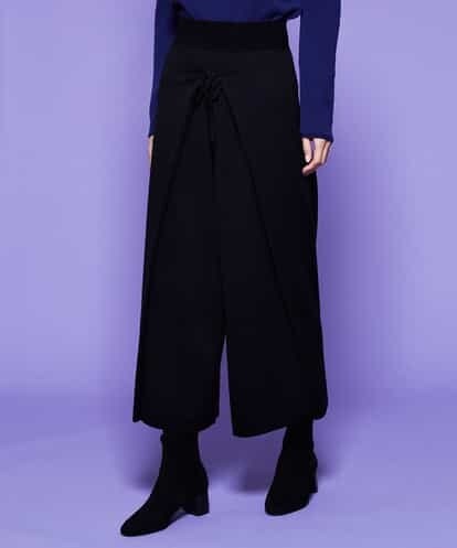 縫い目のないホールガーメントのテクニックで作られたニットパンツ。柔らかなウールの風合を活かし、分量たっぷりのサイドデザインを前でクロスさせるデザインで、スカートパンツのように着ていただけます。また、結び目を前後で変えてすっきと見せたり、結び紐は外せるため、解いて再度に生地を垂らしたデザインパンツとしても履いていただけます。同素材のニットプルオーバー 【GBFBG05230】との組み合わせもおすすめです。model:H173 B80 W58 H84 着用サイズ:M