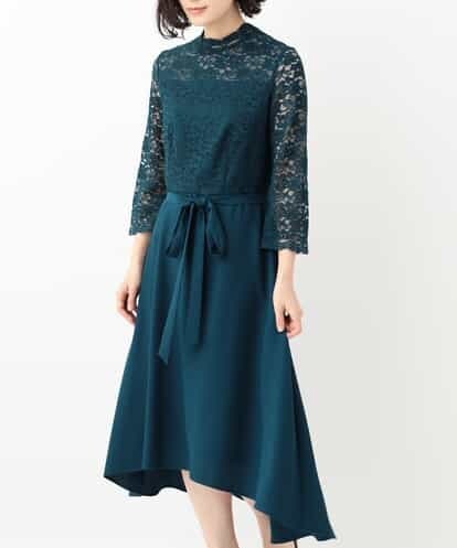 フラワーモチーフのレースがフェミニンムード満点のワンピースです。トップス部分はデコルテゾーンと袖は裏地を付けず透け感を活かし、スカートはテールロングになったフレアシルエットが動きのある一着になっています。上下のテキスタイルのバランスや、スカートの美しいドレープがポイントになった大人のワンピースです。付属のリボンでウエストマークをプラスして、オケージョンシーンにも対応出来るアイテムです。※裏地付き、バックファスナーmodel:H158 B77 W59 H85 着用サイズ:M