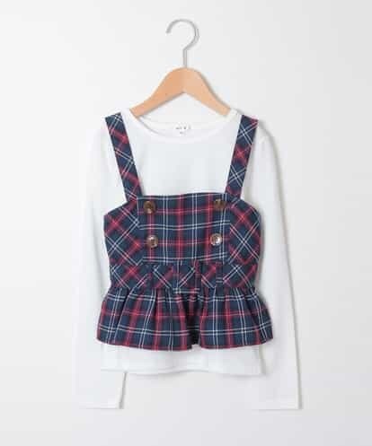 [140-150]チェック柄キャミソール&カットソーセット ネイビー 140