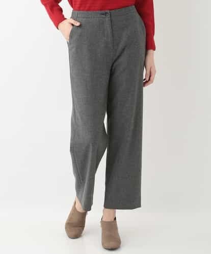 さりげないドレープでシックでいて上品な雰囲気が魅力のパンツです。ウール素材でオフィスシーンにも合わせやすい落ち着きのある一品。ウエスト後ろのみボムを入れたリラクシーなウエストデザインで、トップスインしても、スッキリとしたウエスト周りに。ややゆとりのあるシルエットはトレンド感がありながらも、崩し過ぎないカッチリとした印象もあるボトムです。model:H172 B81 W58 H86.5 着用サイズ:M