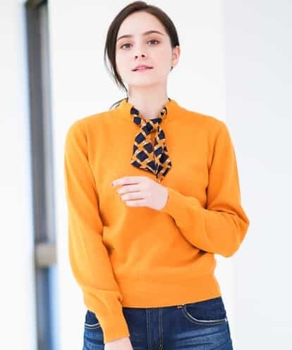 幾何学柄のスカーフがアクセントに映える、モダンレディなニットプルオーバー。 やや詰まったネックラインがよりきちんと感を演出してくれます。 ベースのニットはシンプルな無地なので、デイリーカジュアルからオフィススタイルにと幅広いシーンに活躍してくれます。 model:H165 B79 W60 H88 着用サイズ:M