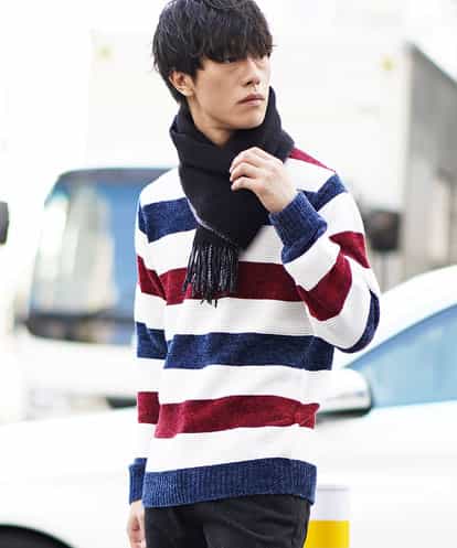 MK MICHEL KLEIN HOMME <ニット(モールボーダー)> モール生地とニット生地を組み合わせたボーダーニット、 異素材のドッキングからなる、シンプルかつアクセントのあるニットです。 クルーネックのため、コートのインナーや、ダウンのインナーに! ニットの中に、カジュアルなシャツを合わせてもかっこいい!