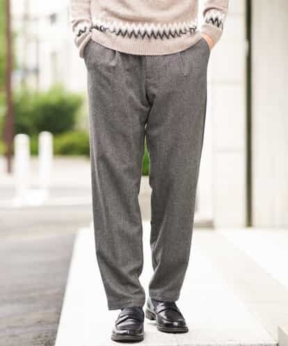 ◆ツイード素材を使用した冬素材の1タックデザインのバギーパンツ◆メランジ調のツイード素材を使用した1タックパンツ。ワイドシルエットながらテーパードをかける事で、すっきりしたシルエットにしています。膝上まで裏地をつけており、着心地も考えた一本です。スタイリングに取り入れるだけで今年らしいスタイルになる一枚です。※44 Sサイズと52 XXLサイズはWEB・一部限定店舗販売です。