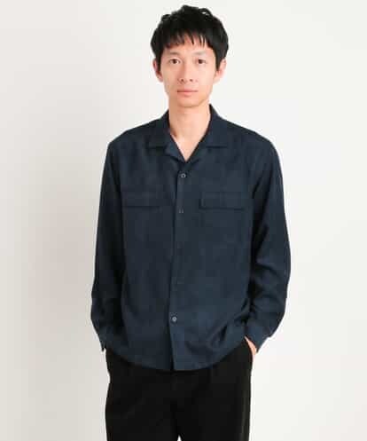 【洗える】フェイクスウェードワイドシャツ[WEB限定サイズ] ネイビー 46
