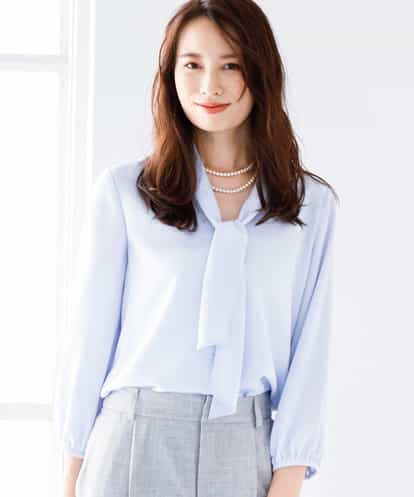【洗濯機で洗える】ボウタイブラウス ライトブルー 38