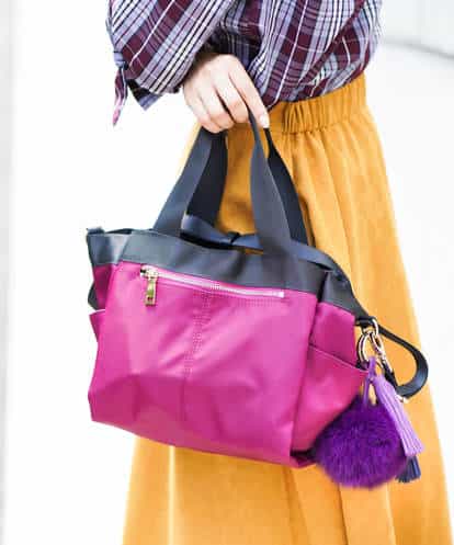 ◆多ポケットが使いやすいトート◆多ポケットの収納性抜群のトートバッグ。光沢感のあるグログランテープやゴールドジップ使いが上品で、カジュアルになりがちなナイロン素材もフェミニンにこなせます。ショルダー2WAY仕様で使いやすいデザインです。
