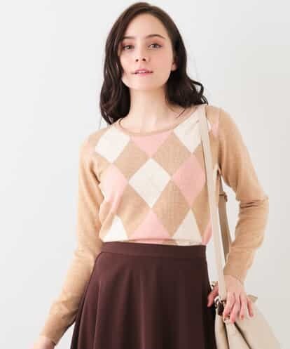アーガイルプルオーバーニット ベージュ 38