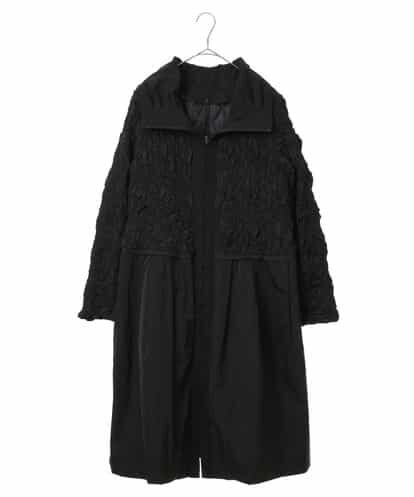 細かなシャーリングを施してデザインした立体感のある風合いが印象的なジップアップコート。シャーリング部分は刺繍糸の裏糸にゴムを入れていますので、ストレッチ性にも富んでいます。着用感が楽なのもポイント。適度なハリと光沢のある上質なサテン生地はウエストや襟に施したタックが美しいシルエットを作り出してくれます。キルティングのライナーは取り外しが可能な為、秋口や春先にも大活躍。同ラインで仕立てたジャケット【RLJAH40410】スカート【RLHAH41250】もおすすめです。
